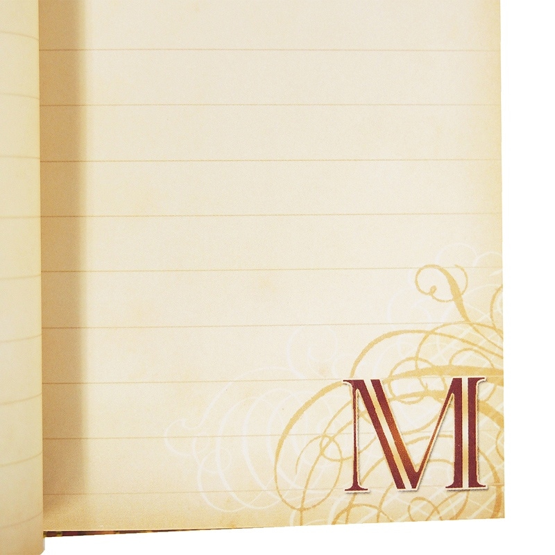 赤茶色を基調としたイニシャルMのノートは、