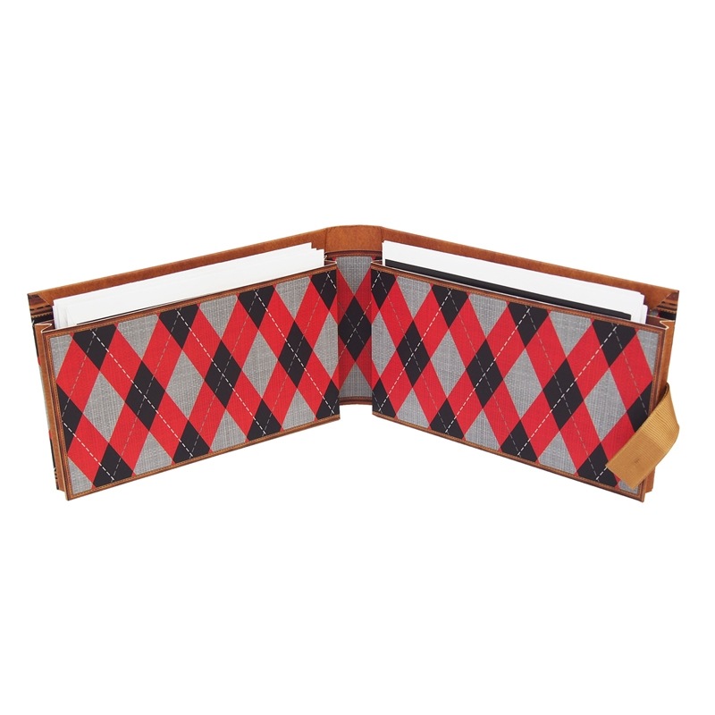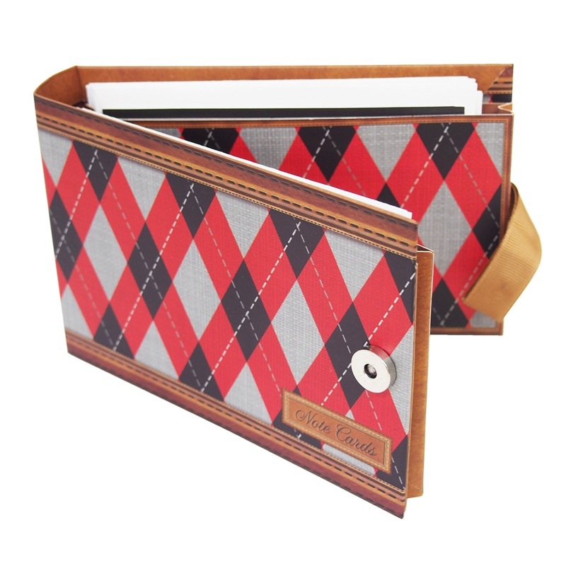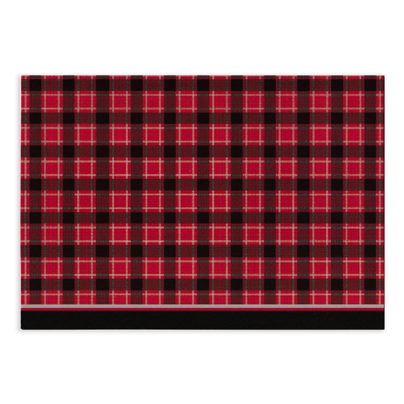 ボックスには、赤とモノトーンのタータンチェックがデザインされています。
