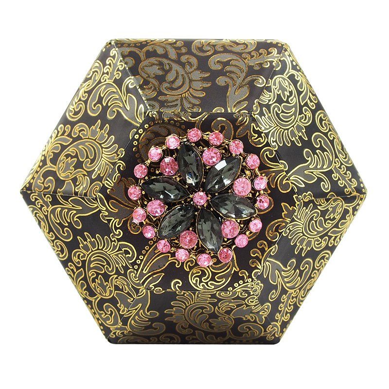 六角形の形をした珍しいボックス。蓋にはブローチが付いています。