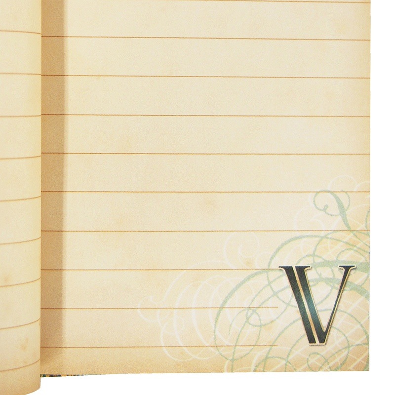 明るいグリーンを基調としたイニシャルVのノートは、