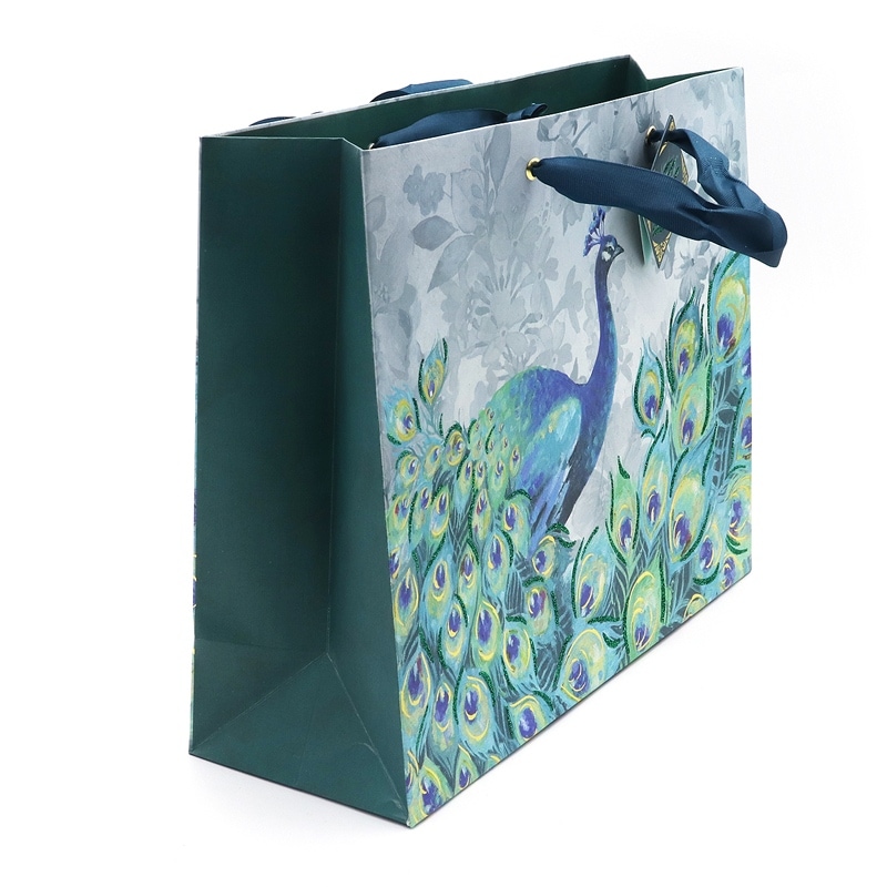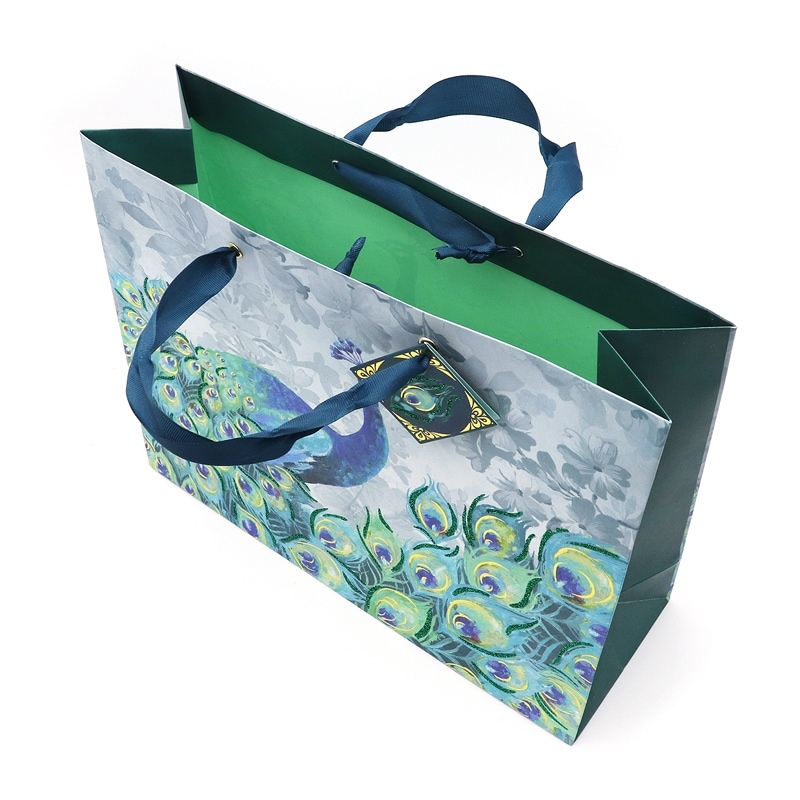 Punch Studio ギフトバッグ | 紙袋 タグ付き Mサイズ (孔雀×グリーン) エメラルドピーコック