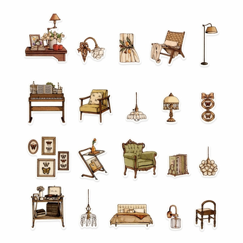 トップ > 文房具 > シール > フレークシール セット スクラップ素材 レトロシリーズ (家具) 和紙素材