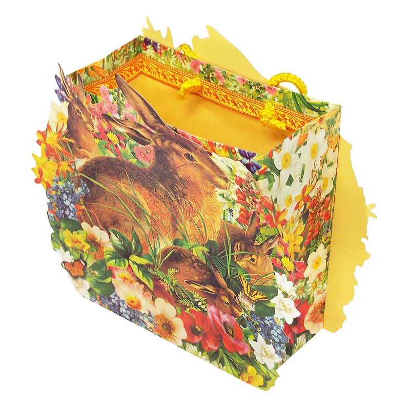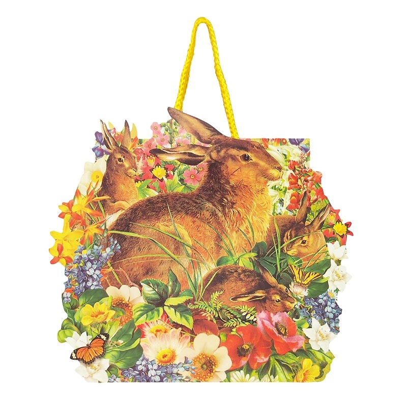 Punch Studio 【イースター】 ダイカット ギフトバッグ | 紙袋 (花×ウサギの親子・4羽)