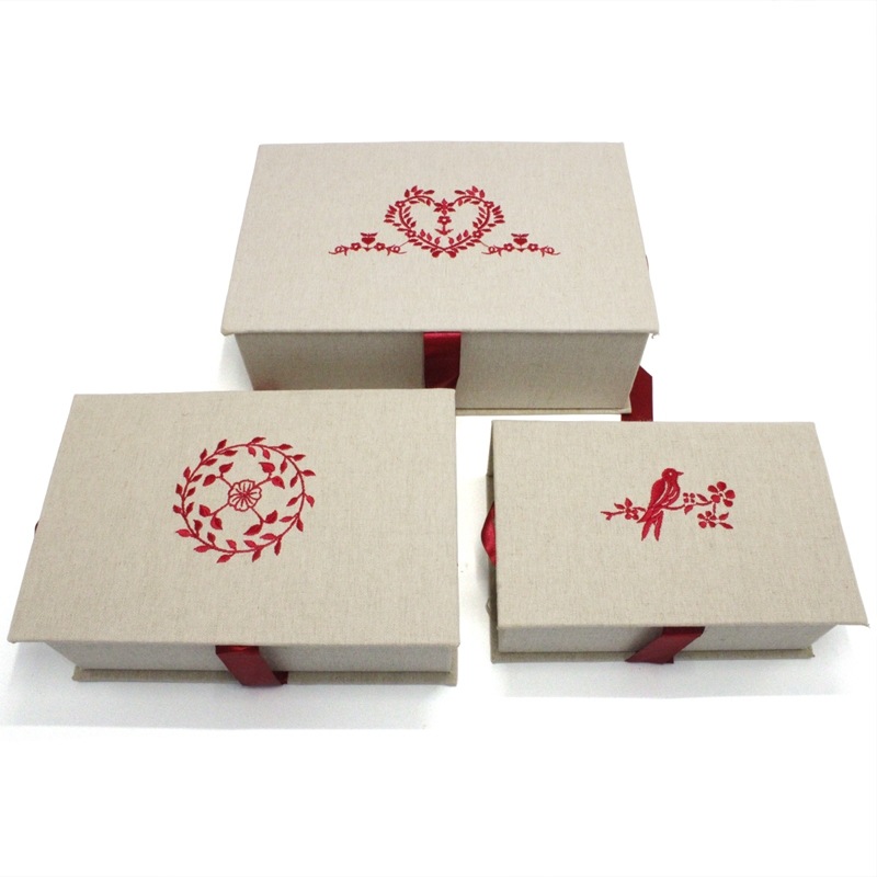 白い表面には赤色で綺麗な刺繍と、赤のリボンで豪華でお洒落なデザインとなっています。