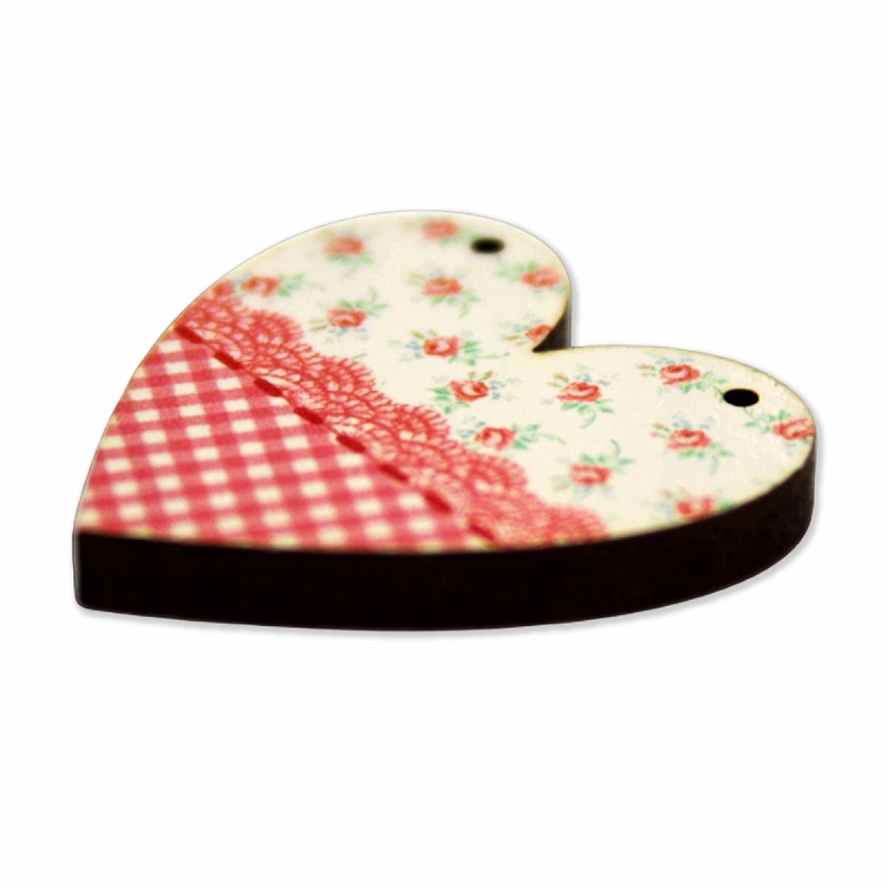トップ > ラッピング | 手芸用品 > ボタン > フランス製 木製ボタン 2つ穴 (ハート×花柄×レッド) アトリエ・ボヌール・ドゥ・ジュール