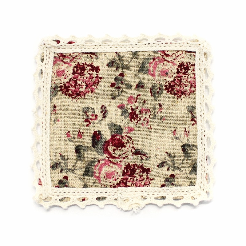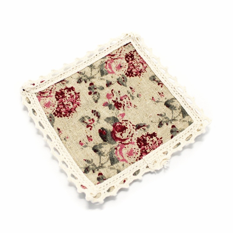 【4枚セット】リネン素材の薔薇とレースのコースター