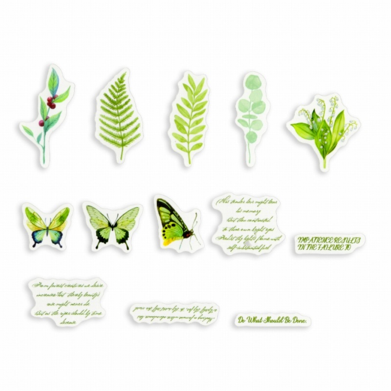 グリーンの花や蝶などが綺麗で、かわいいシールセットです♪