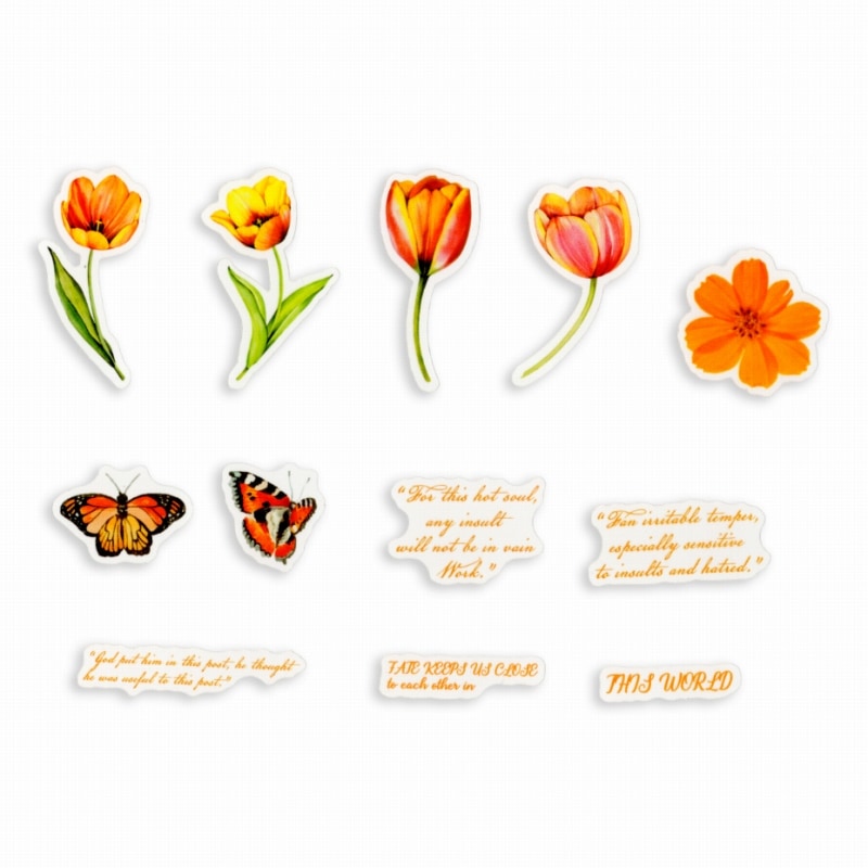 オレンジの花や蝶などが綺麗で、かわいいシールセットです♪